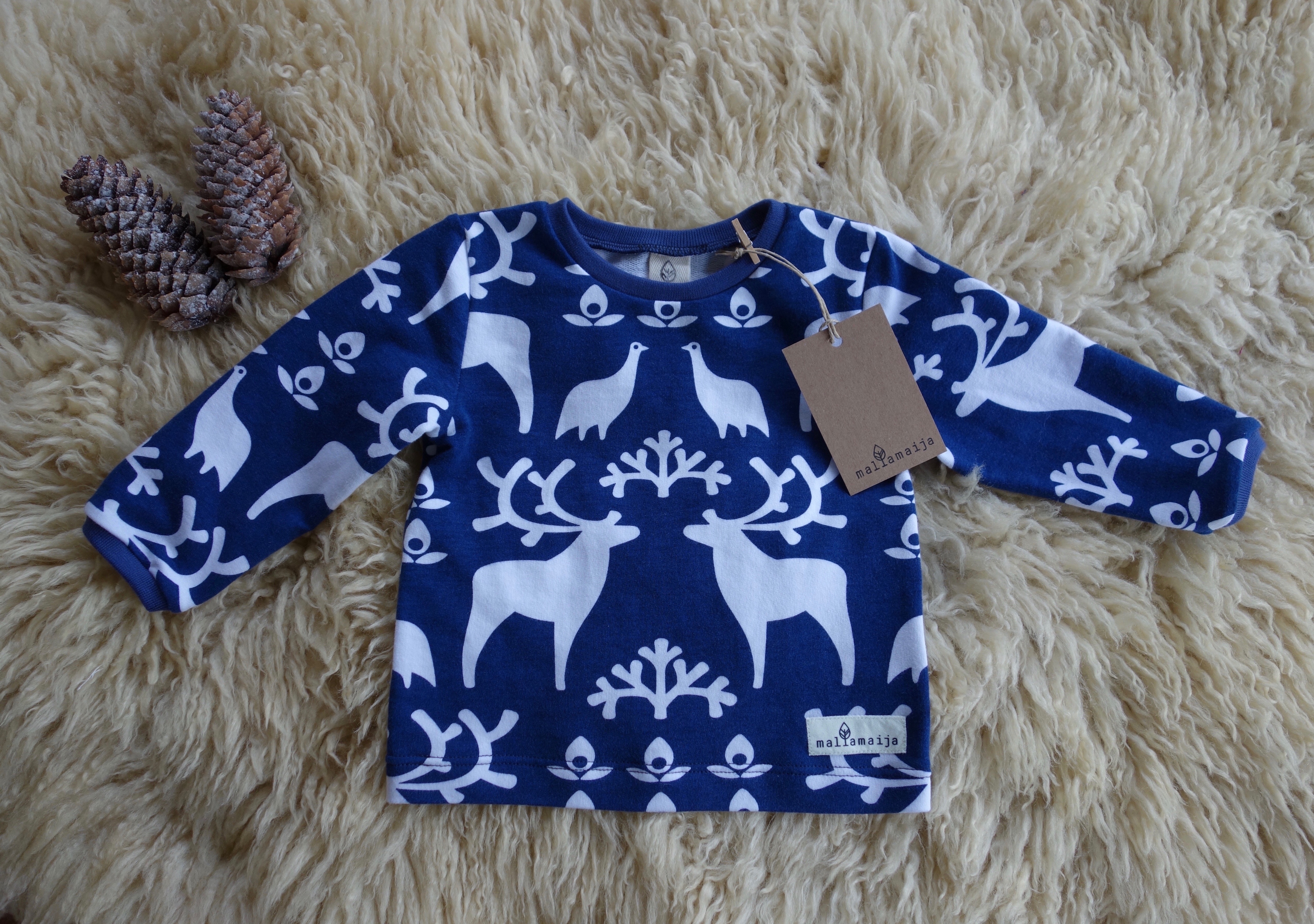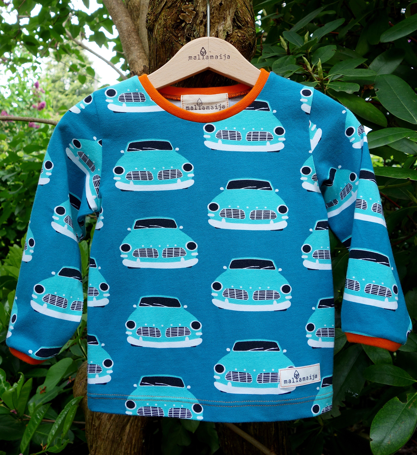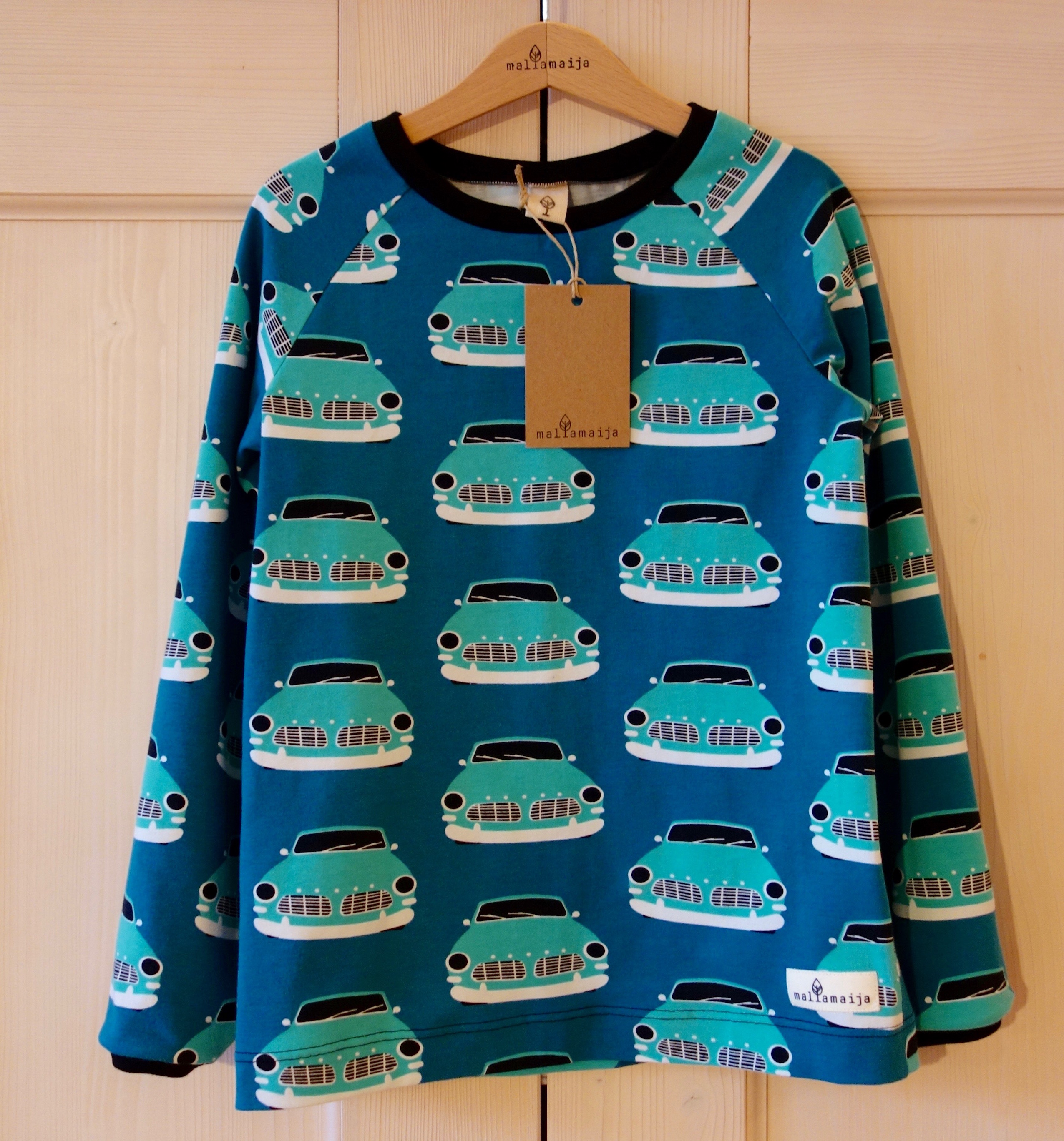 The t-shirt can be ordered in size 62/68 – 134/140. From size 92/98 onwards the t-shirt is raglan-sleeved.